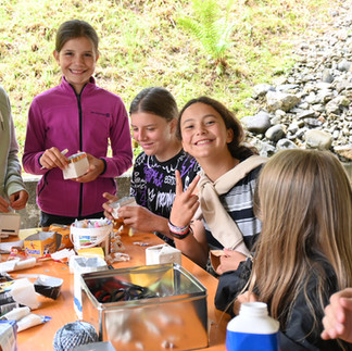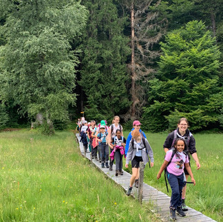 Am Morgen direkt nach dem Frühstück machten wir uns bereit für die Wanderung und sind nach Unterterzen losgewandert. Dort angekommen, haben wir unser Lager-Heidi-Lied gesungen und dazu einen Tanz gelernt. Während und nach dem Tanzen verschenkten wir fleissig unsere Blümchen, welche wir am Montag gebastelt hatten. Ein paar Bauarbeiter hatten so Freude an unserem Gesang und den Blumen, dass sie gleich mittanzten. Mit dem Zug fuhren wir bis nach Mels und dann mit dem Bus ins Weisstannental, wo unsere Wanderung begann. Während der Wanderung wurde viel gesungen und gelacht. Beim Chapfensee kam der Alpöhi und gab uns Käse zum Probieren, da er gerade von der Alp kam. Anschliessend hielten wir eine Gruppenstunde zum Thema Staunen über Gottes Schöpfung und Würde. Nach weiteren 30 Minuten wandern kamen wir an unserem Biwakplatz an. Dort stellten wir unsere Berliner-Zelte auf und assen cremige Älplermagronen, welche auf dem Feuer gekocht wurden. Später schliefen alle friedlich in ihren Zelten ein.